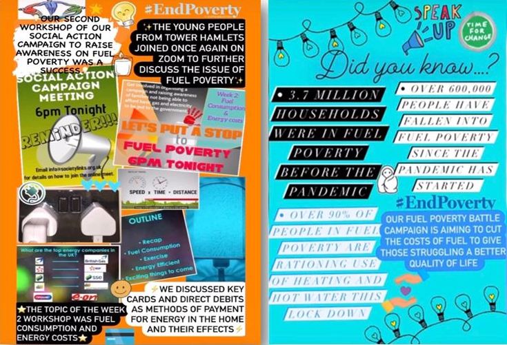 A group of young people from SocietyLinks Tower Hamlets have come together to start a social action campaign to fight against fuel poverty. They virtually meet weekly to discuss their plans on developing their campaign further.